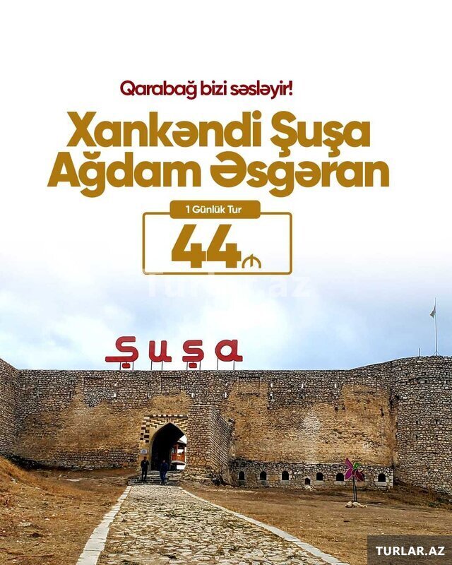 119 Azn  Xankəndi - Şuşa - Ağdam - Xocalı - Əsgəran turu Tarix : 1, 2, 8, 9, 10, 11, 15, 16, 22, 23, 29, 30 noyabr Qiymət: Ekonom paket: 44 azn. Standart paket: 49 azn. Qiymətə daxildir: Portal qeydiyyatı Nəqliyyat