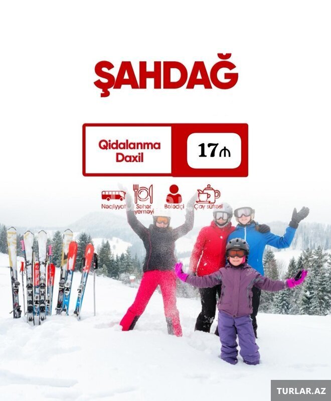 15 Azn ŞAHDAĞ TURU Möhtəşəm açılış Qiymət Eko Paket 20 Azn Standart Paket 25 Azn Full Paket 35 Azn Tarix: 20, 21, 27, 28, 29, 30, 31 Dekabr 1, 2, 3, 4, 5, 6, 7, 8, 10, 11 Yanvar Proqrama daxildir Komfortlu Nəqliyyat Tur