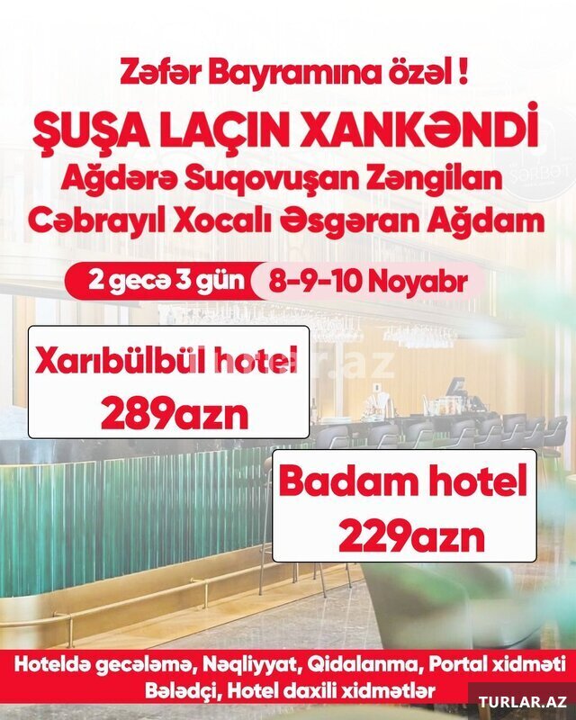 •Xankəndi Badam Oteldə 4* gecələmək ilə: 229 azn