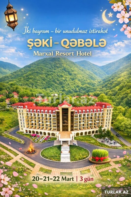 145 Azn LÜKS NOVRUZ & RAMAZAN BAYRAM TURU •Turun tarixi: 20-21-22 Mart ~ 2 GECƏ / 3 GÜN - Bayram əhvalında lüks istirahət •Turun qiyməti: 299 ₼ (1 nəfər üçün) ✓Paketə daxildir: - 2 gecə Marxal Resort-da gecələmə - 3 dəfə