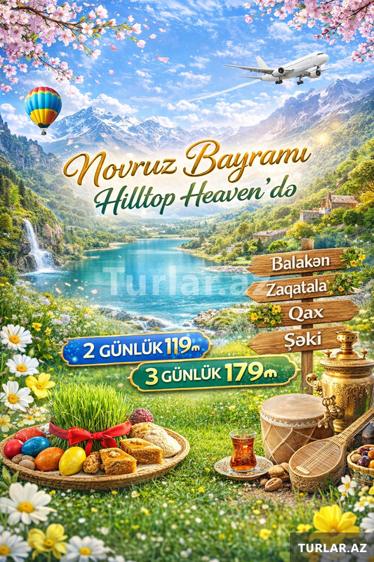 Şirkət129 Azn *NOVRUZ BAYRAMINA ÖZƏL* *Qax - Şəki - Qəbələ - Zaqatala - Mingəçevir Turu* 2 Gecə / 3 Gün - Cəmi 179 Azn *TURUN TARİXİ* 21-22-23 Mart 22-23-24 Mart - *QİYMƏTƏ DAXİLDİR Oteldə gecələmə(Hilltop Heaven Hotel) Səhər