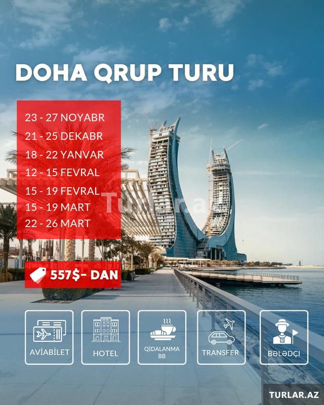 Qiymət: 557 USD-dan başlayan qiymətlər