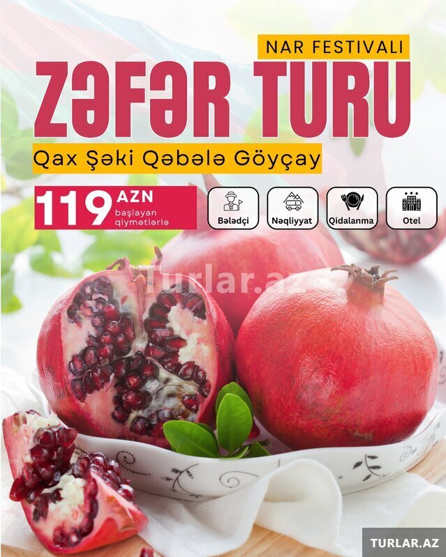 Şirkət20 Azn Göyçay Nar festivalına hazırsız ? Göyçay Mingeçevir turu İlin möhtəşəm 2 Bayramını bir arada qeyd eləməyə gedirik Zəfər Bayramı və Nar festivalına qeydiyyat üçün tələsin — Tarix: 8 Noyabr və 9 Noyabr — Qiymət isə