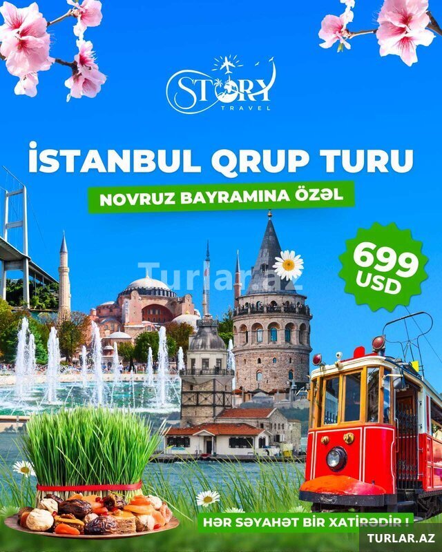 Şirkət474 Azn İstanbul Sizi Çağırır - Qrup Turu ilə Möhtəşəm Səyahət Novruz bayramına özəl 20.03.2026 - 24.03.2026 - 599$ ⸻ Qiymətə daxildir Hoteldə gecələmə Səhər yeməyi Peşəkar tur rəhbəri Transfer Gediş-dönüş aviabileti 8-10 kq əl