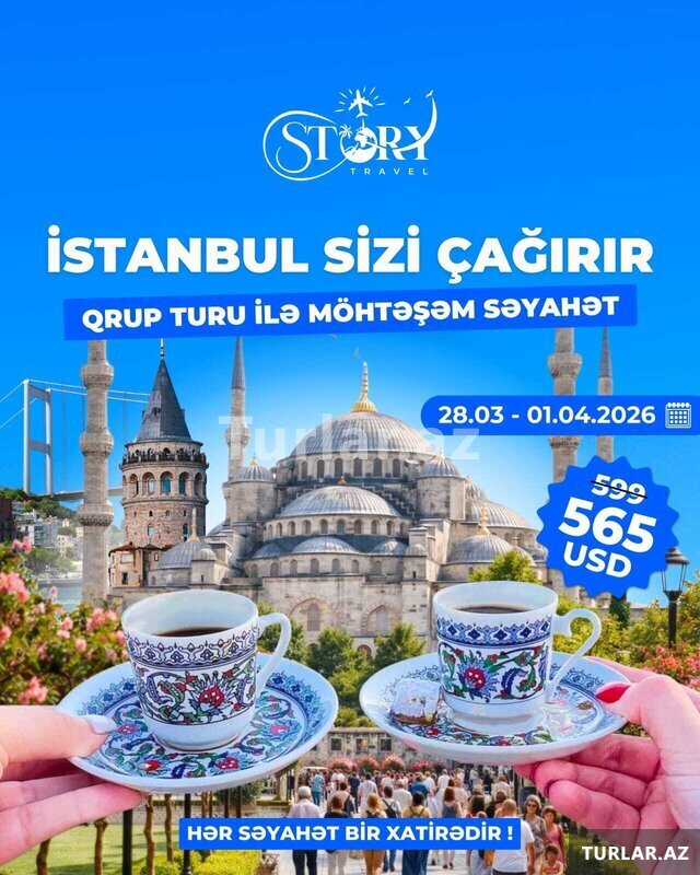 Şirkət699 Azn İstanbul Sizi Çağırır - Qrup Turu ilə Möhtəşəm Səyahət Sevgililər Gününə özəl 13.02.2026 - 17.02.2026 - 599$ Novruz bayramına özəl 20.03.2026 - 24.03.2026 - 699$ 28.03.2026 - 01.04.2026 - 565$ 20.04.2026 - 24.04.2026 -