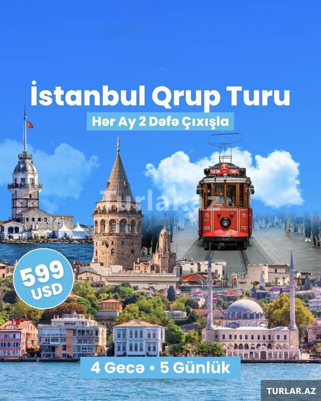 Şirkət438 Azn İstanbul Sizi Çağırır - Qrup Turu ilə Möhtəşəm Səyahət Sevgililər Gününə özəl 13.02.2026 - 17.02.2026 - 599$ Novruz bayramına özəl 20.03.2026 - 24.03.2026 - 699$ 28.03.2026 - 01.04.2026 - 565$ 20.04.2026 - 24.04.2026 -