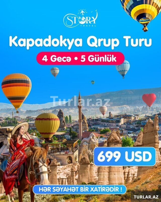 Şirkət605 Azn NOVRUZ BAYRAMINA ÖZƏL KAPADOKYA QRUP TURU Unudulmaz 4 Gecə / 5 Günlük Qrup Turu Tarix: ➤ Gediş: 22 MART ➤ Dönüş: 26 MART Qiymət: 699-USD İlkin ödəniş: 300USD Qalıq məbləğ: Turdan 1 həftə öncəyə qədər - Növbəti