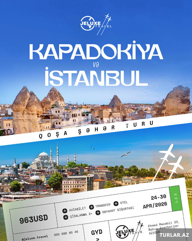 01.11.2024-31.03.2025 tarixləri aralığına İstanbula gediş-dönüş biletini indidən al, cəmi 355 AZN ödə