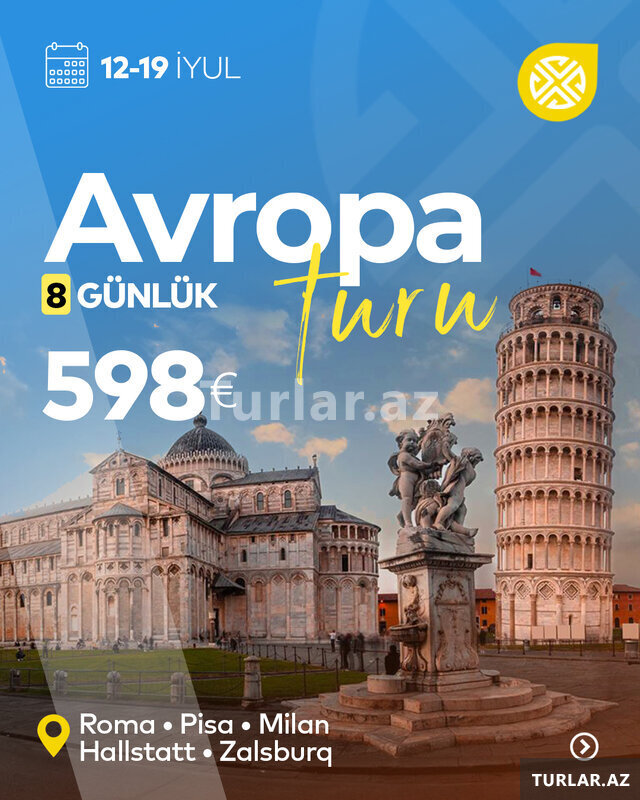 AVROPA ƏTRAFINDA 7 GÜN Qiymət: 575 EUR Tarix: 02.05.2026-08.05.2026 16.07.2026-22.07.2026 08.08.2026-14.08.2026 05.09.2026-11.09.2026 Avropanın ən gözəl şəhərləri ilə dolu unudulmaz 7 günlük səyahət! 1-ci gün: