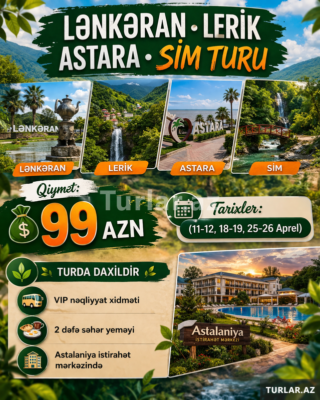 *ASTALANİYA HOTELDƏ BAHARIN GƏLİŞİNİ VƏ NOVRUZ BAYRAMINI KEÇİRMƏYƏ HAZIRSINIZMI? * *LƏNKƏRAN • ASTARA •SIM TURU* Qiymət: 109 AZN - Tarix: (21-22 / 22-23 / 24-25 Mart) ⸻ TURDA OLANLAR VIP nəqliyyat xidməti 2 dəfə səhər