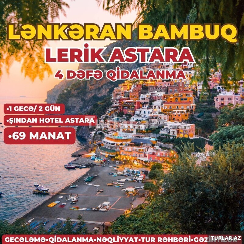 89 Azn Zəfər gününə özəl 3 günlük Cənub Xəmsəsi LƏNKƏRAN • ASTARA •MASALI•YARDIMLI•LERİK TURU Qiymət: 149 AZN Tarix: ( 8-9-10 ) Noyabr TURDA OLANLAR VIP nəqliyyat xidməti 3 dəfə səhər yeməyi Astalaniya istirahət mərkəzində