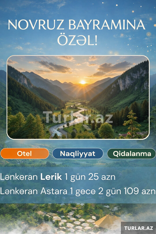 Şirkət45 Azn *ASTALANİYA HOTELDƏ BAHARIN GƏLİŞİNİ VƏ NOVRUZ BAYRAMINI KEÇİRMƏYƏ HAZIRSINIZMI? * *LƏNKƏRAN • ASTARA •SIM TURU* Qiymət: 109 AZN - Tarix: (21-22 / 22-23 / 24-25 Mart) ⸻ TURDA OLANLAR VIP nəqliyyat xidməti 2 dəfə səhər