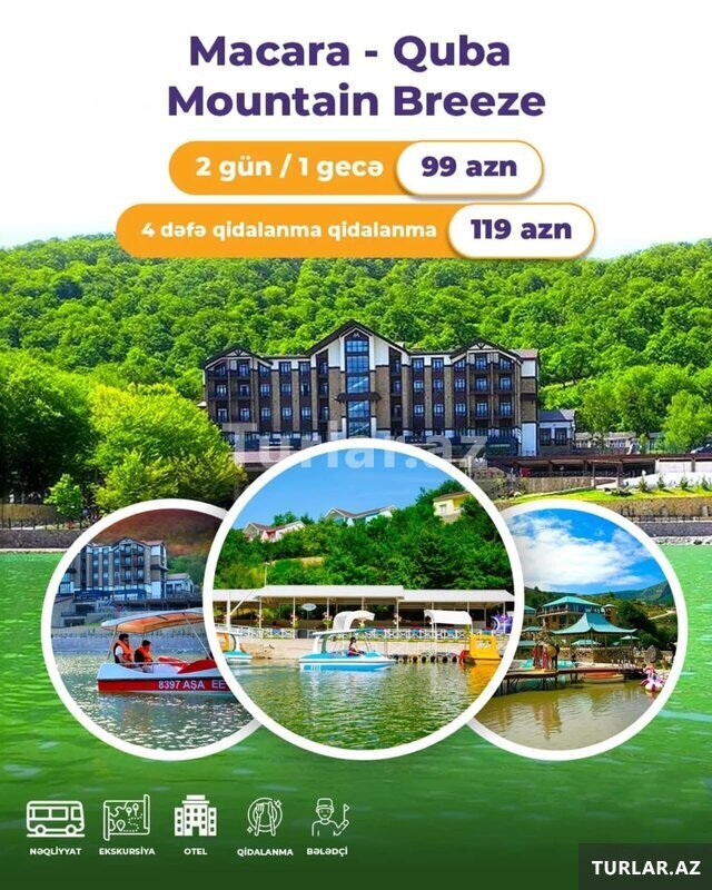 Quba Macara Dolu Bir Tur Roll Coaster və Dağlar – Nəfəskəsici Tura Hazırsan?" Qiymət : Standart paket - 89AZN (2 səhər yemeyi) Full paket - 109AZN (2 səhər 1 günorta 1 axşam yemeyi) — Turun tarixləri: Hər həftə