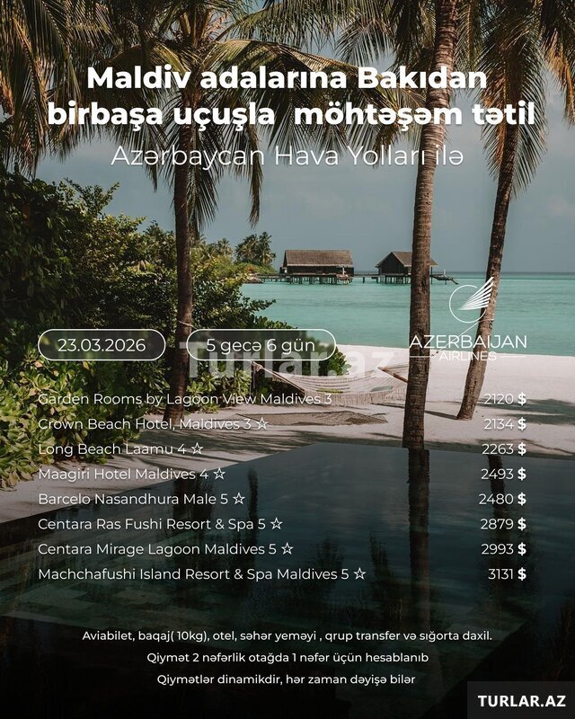 Azərbaycan Hava Yolları ilə Maldiv adalarına Bakıdan birbaşa uçuşla möhtəşəm tətil !