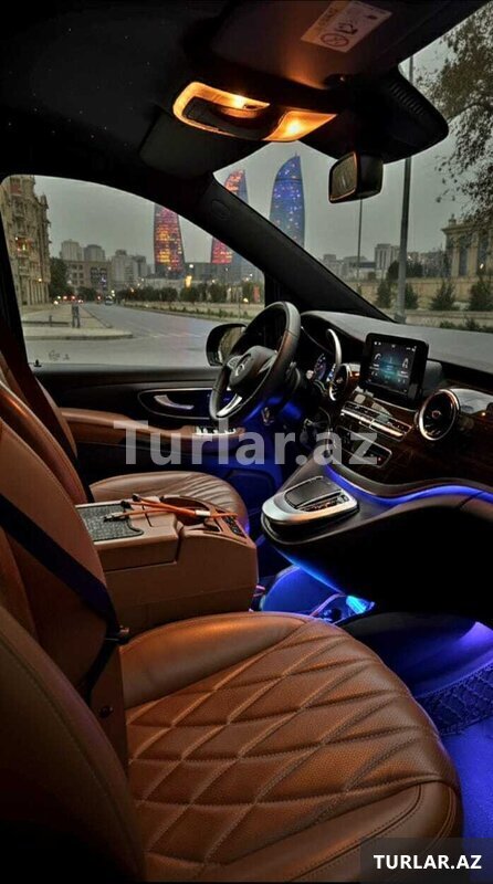 7 nəfərlik VIP Mercedes-Benz V-Class - premium komfort, geniş salon və səliqəli interyer ilə yüksək səviyyəli qonaq və rəhbər heyət daşınması üçün ideal seçimdir.