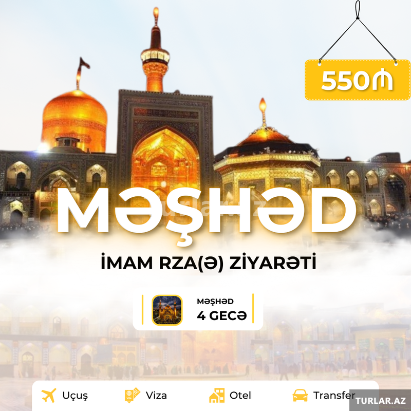 Müqəddəs Məşhəd ziyarət turu 2026 proqramımıza qoşularaq mənəvi rahatlıq və təşkil olunmuş səfər komfortunu birlikdə yaşayın.