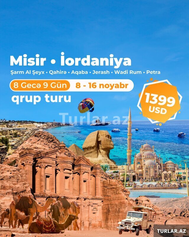 MİSİR(Şarm Al Şeyx , Qahirə) —İORDANİYA(Aqaba, Jerash, Wadi rum, Petra) qrup turu