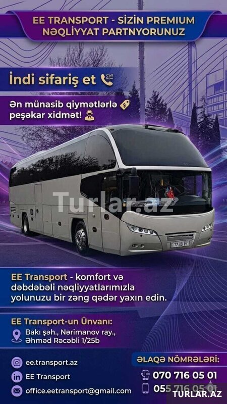 Şirkət50 Azn "EE Transport" avtobus sifarişləri Korporativ və Fərdi Nəqliyyat Xidmətləri | Corporate & Private Transportation Solutions İşçi daşınması (servis) | Staff Shuttle Services Ölkədaxili avtobus və