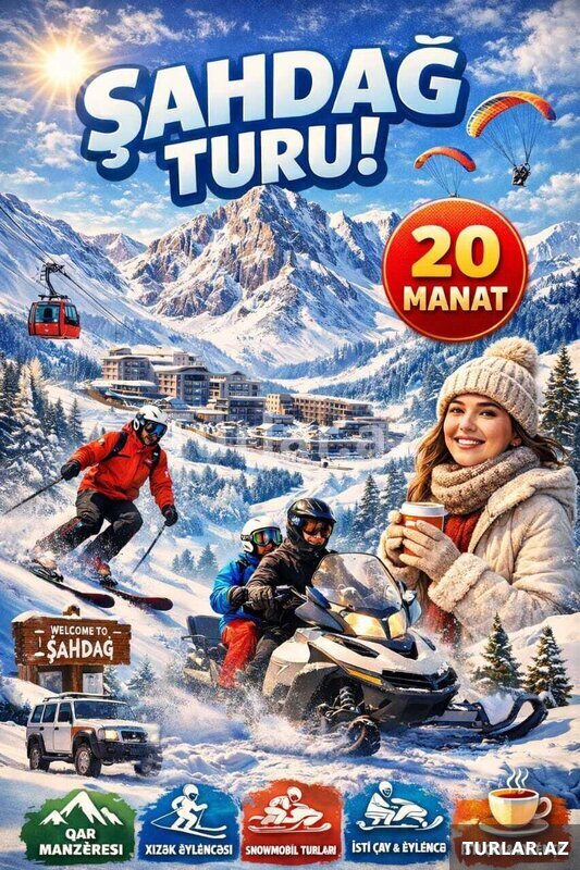 Qış Mövsümünün Möhtəşəm Adrenalin və Əyləncə Dolu Turu Şahdağ Qış Turu Tarix: 30, 31 Dekabr Növbəti ay: 1, 2, 3, 4, 10, 11, 13, 14, 15, 17, 18, 20, 21, 22, 24, 25, 27, 28, 29, 31 Yanvar Qiymət: •Ekonom paket: 17