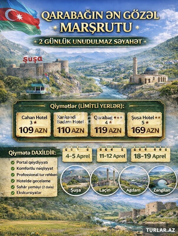 Şirkət25 Azn Novruz və Ramazan bayramına özəl 2 günlük Qarabağ turu