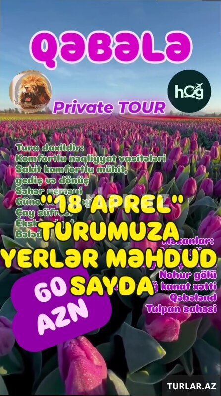 Tur və qiymətlər Aprel ayı ücün keçərlidir və Həftə boyu hər gün təşkil edilir.
