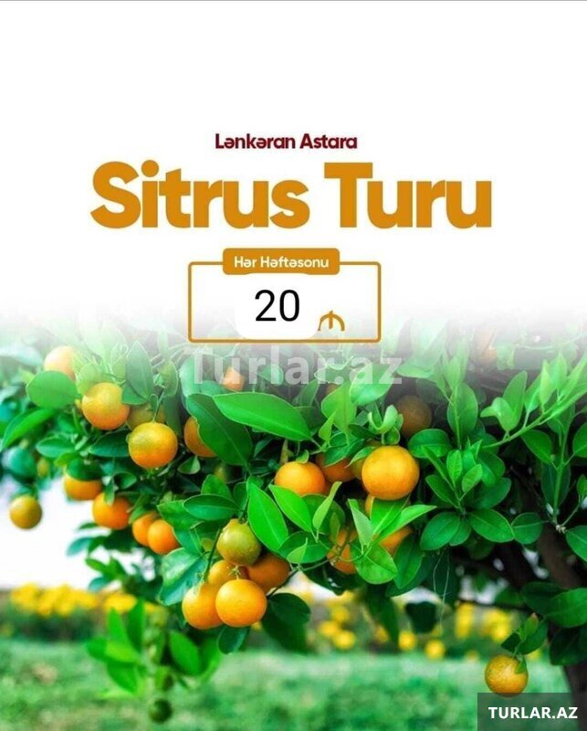 89 Azn Lənkəran Astara Sitrus turu — •Tarix: 4, 5, 11, 12, 18, 19, 25, 26 oktyabr — •Qiymət: Ekonom paket: 25 AZN Standart paket: 29 AZN — •Qiymətə daxildir: Komfortlu nəqliyyat. Tur rəhbəri. Səhər yeməyi. (Standart paketə