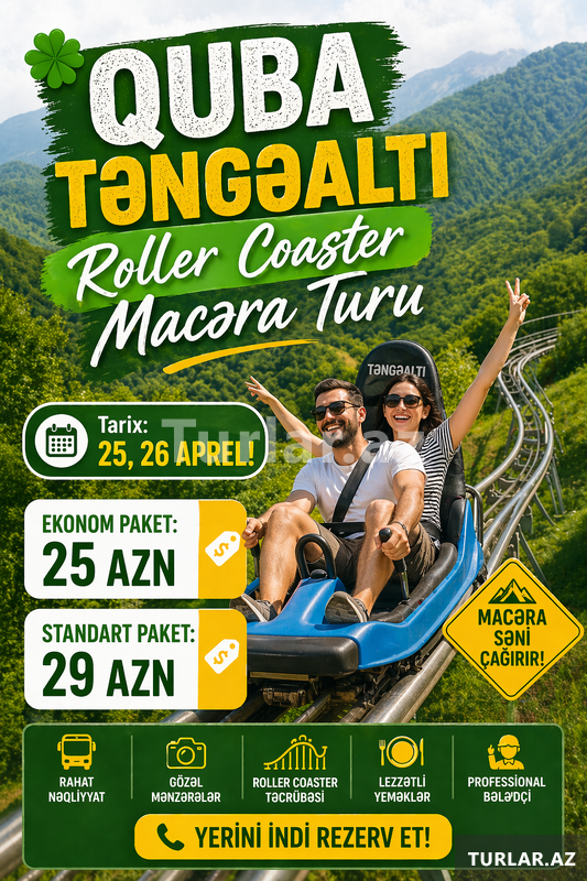 Şirkət25 Azn MART AYINA ÖZƏL - BİR GÜNLÜK MÖHTƏŞƏM TURLAR! Yazın ilk günlərini təbiətin qoynunda, bol əyləncə və pozitiv enerji ilə keçirməyə hazırsınız? Elə isə bizə qoşulun! Tarixlər: 7-8-9-20-21-22-23-24-25-26-27-28-29-30