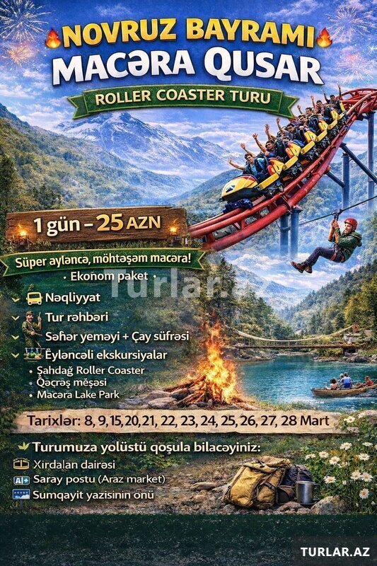 •Fərdi qrup şəkilində (minimum 18 nəfər olarsanız) digər rayonlarada tur təşkil etmək mümkündür! (Toplanış yeri və tarix seçimi sərbəstdir)