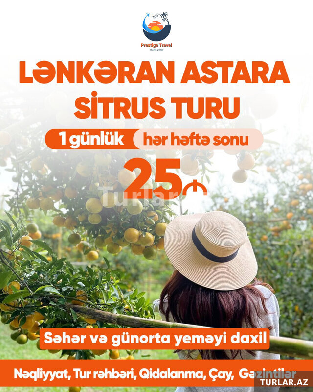 Lənkəran Astara Sitrus turu 2 Dəfə Qidalanma daxil . —. Tarix: 16, 18, 19, 21, 22, 23, 25, 26, 28, 29, 30 Oktyabr. —. Qiymət: . Ekonom paket: 25 AZN. Standart paket: 29 AZN. Full paket: 35 AZN . —. Qiymət [читат далше]