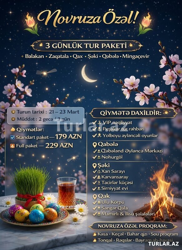 Novruz bayramını Dağlar qoynunda qeyd edin ! . 3 GÜNLÜK BALAKƏN ZAQATALA QAX ŞƏKİ QƏBƏLƏ MİNGƏÇEVİR turu . Turun Müddəti: 2 gecə - 3 gün. Turun tarixi: 21-23 Mart. Turun Qiyməti: . Standart paket: 17 [читат далше]