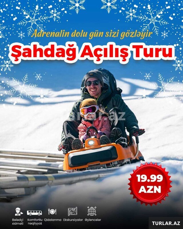 ŞAHDAĞ TURU. Möhtəşəm açılış. Qiymət. Eko Paket 20 Azn. Standart Paket 25 Azn. Full Paket 35Azn. Tarix: 13, 14Dekabr( Sezon açılışı) 20, 21, 27, 28, 29, 30 Dekabr. Yanvar hər həftəsonu. Proqrama daxildir [читат далше]