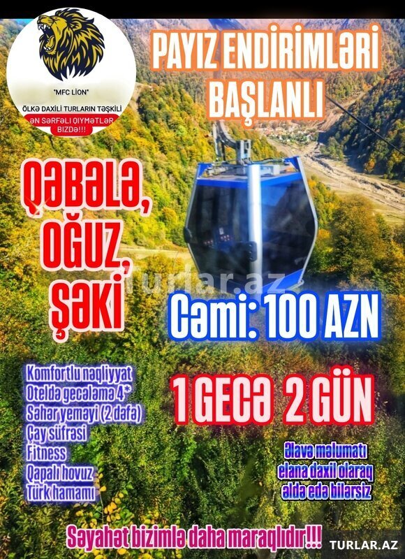 Turlar Oktyabr ayı boyunca həftədə 3 dəfə, həftə içi Çərşənbə axşamı Çərşənbə, Cümə axşamı Cümə və həftə sonu Şənbə və Bazar günləri 7, 20, və 50 nəfərlik nəqliyyat vasitələri ilə təşkil edilir. Çıxı [читат далше]
