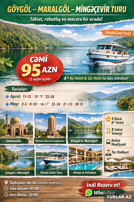 Göygöl – Maralgöl – Mingəçevir!. Təbiətin qucağında istirahət. Kürdə gəmi turu. Sadəcə 95 ₼!. İndi rezerv et!. _. GÖYGÖL MARALGÖL MİNGƏÇEVİR TURU. 4* As Hotel və Gis Hotel lüks istirahət sizi gözləyir! [читат далше]