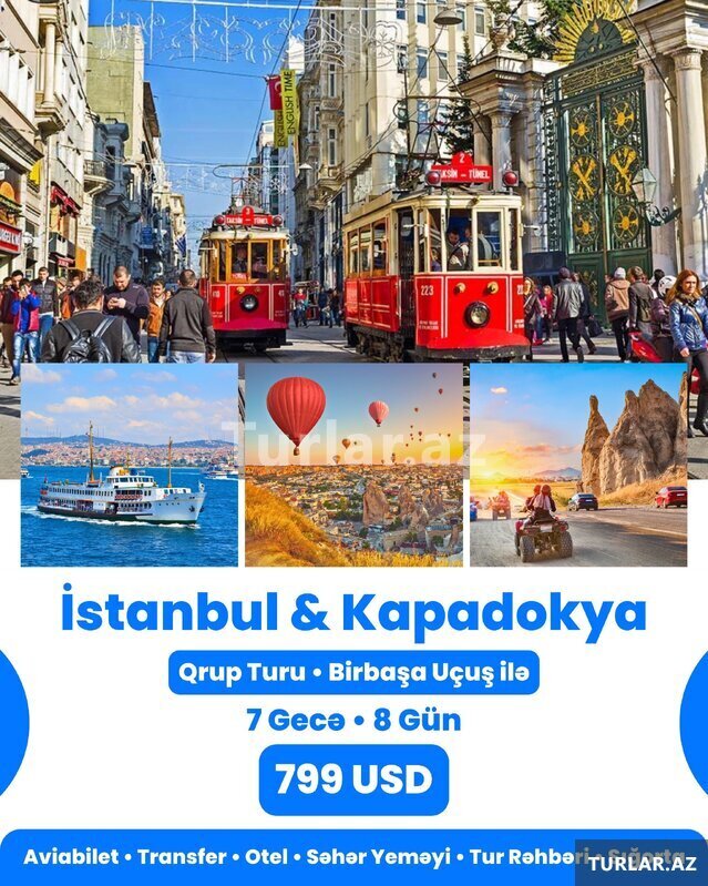 İSTANBUL KAPADOKYA QRUP TURU (Birbaşa uçuşla). Tarix və qiymətlər. - 20-27 Mart 799$ (Novruz bayramına özəl). - 09-16 İyul 799$. - 09-16 Avqust 799$. ilkin ödəniş 50% . Turun müddəti (7 gecə 8 gün). Tur [читат далше]
