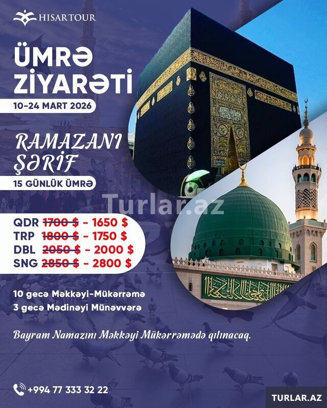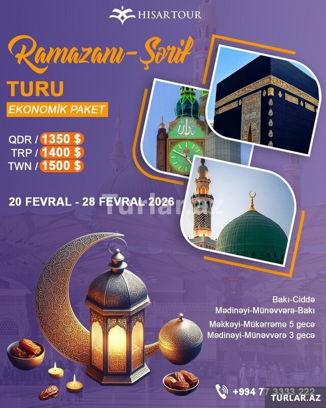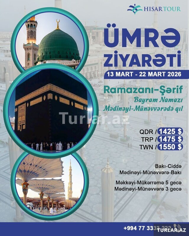 Hisar Tour Ümrə xidmətləri zəvvarlara Məkkəyi-Mükərrəmə və Mədinəyi-Münəvvərəyə rahat, təhlükəsiz və qaydalara uyğun şəkildə ziyarət imkanı təqdim edir. Ümrə proqramlarımızda uçuş biletləri, rahat ote [читат далше]
