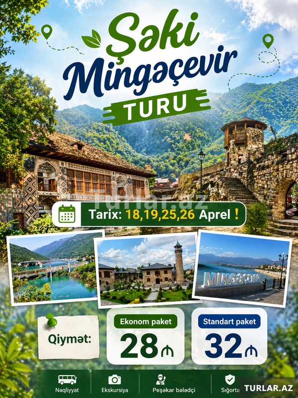 Şəki Mingəçevir Turu. —. Tarix: 4, 5, 11, 12, 18, 19, 25, 26 Aprel . —. Qiymət:. Ekonom paket: 28₼. Standart paket: 32₼. —. Qiymətə daxildir:. VIP Nəqliyyat (20, 30, 50 nəfərlik). Professional bələdçi [читат далше]