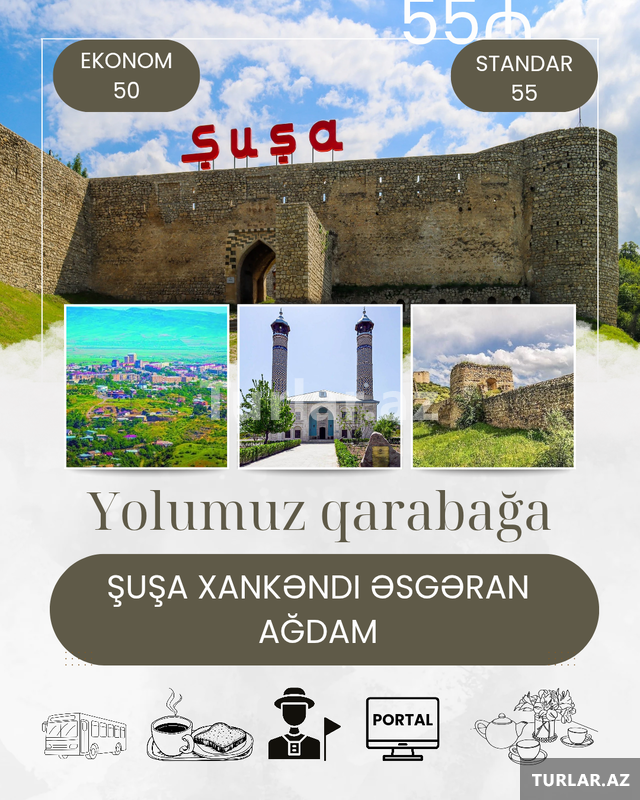Xankəndi - Şuşa - Ağdam - Əsgəran turu . Tarix. 5, Oktyabr. Qiymət: . Okanom pakey: 50 azn. Standart paket: 55 azn. Qiymətə daxildir:. Portal qeydiyyatı. Nəqliyyat xidməti. Ekskursiyalar. Tur rəhbəri [читат далше]