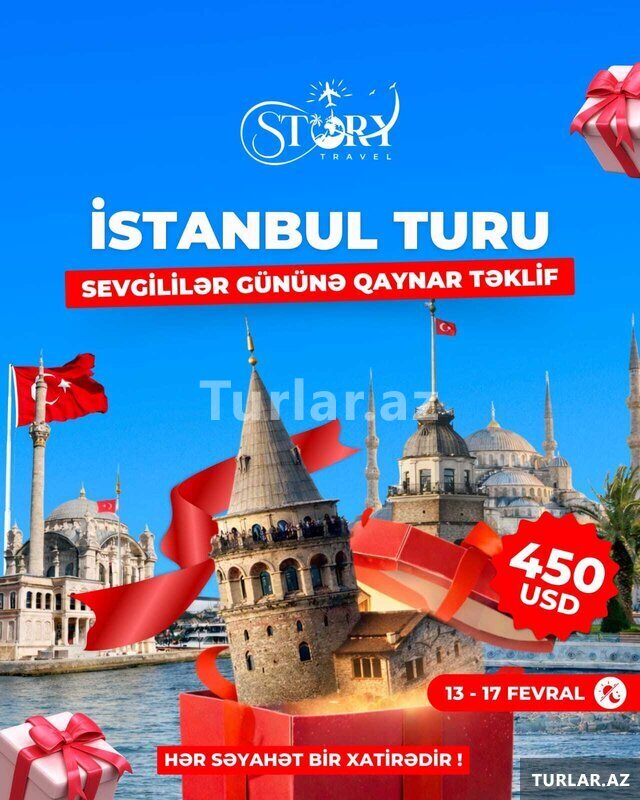 Qaynar İstanbul. 13-17 Fevral. 4 Oteldə Gecələmə. Səhər Yeməyi. Vip Transfer + Qarşılanma. 14 Fevral Gəmidə şam yeməyi. Adalar Turu Hədiyyə. Bu fürsət qaçmaz. * Suallarınız və qeydiyyat üçün biziml [читат далше]