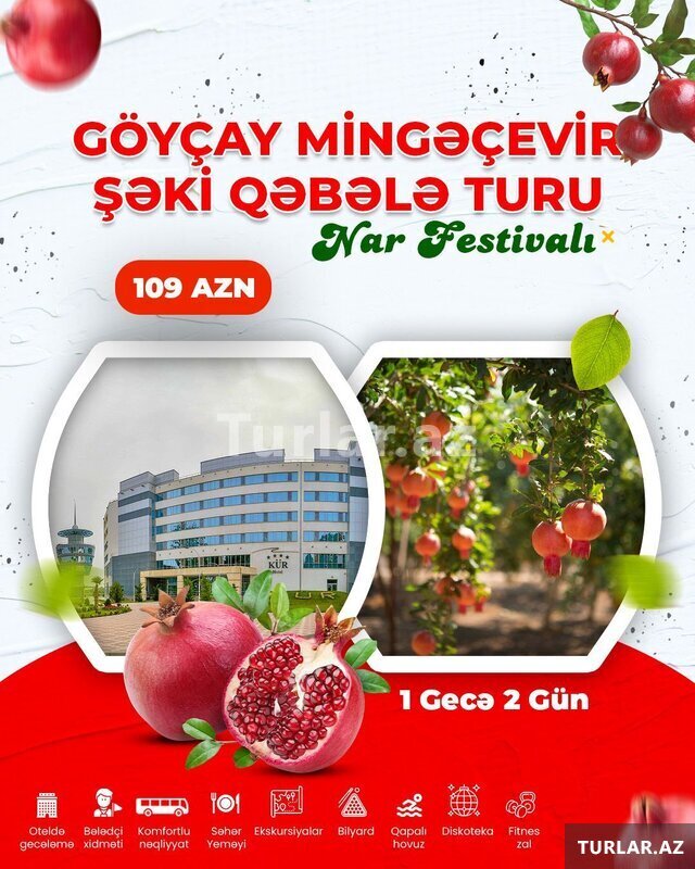 *Nar Festivalı turuna qeydiyyat başlamışdır !* . *GÖYÇAY NAR FESTİVALI MİNGƏÇEVİR ŞƏKİ QƏBƏLƏ TURU*. Tarix: (8/9) (9/10)NOYABR . Müddət: 1 Gecə 2 Gün . Turun qiyməti: 109 AZN . QİYMƏTƏ DAXİLDİR: . Gülərü [читат далше]