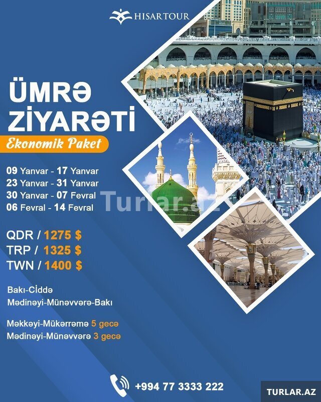 Hisar Tour ilə Dekabr-Yanvar-Fevral Aylarında Ümrə Turları . Tarixlər:. 5-13 Dekabr 2025. 14-21 Dekabr 2025. 26 Dekabr – 02 Yanvar 2026. 28 Dekabr - 04 Yanvar 2026. 09 - 17 Yanvar 2026. 23 - 31 Yanva [читат далше]