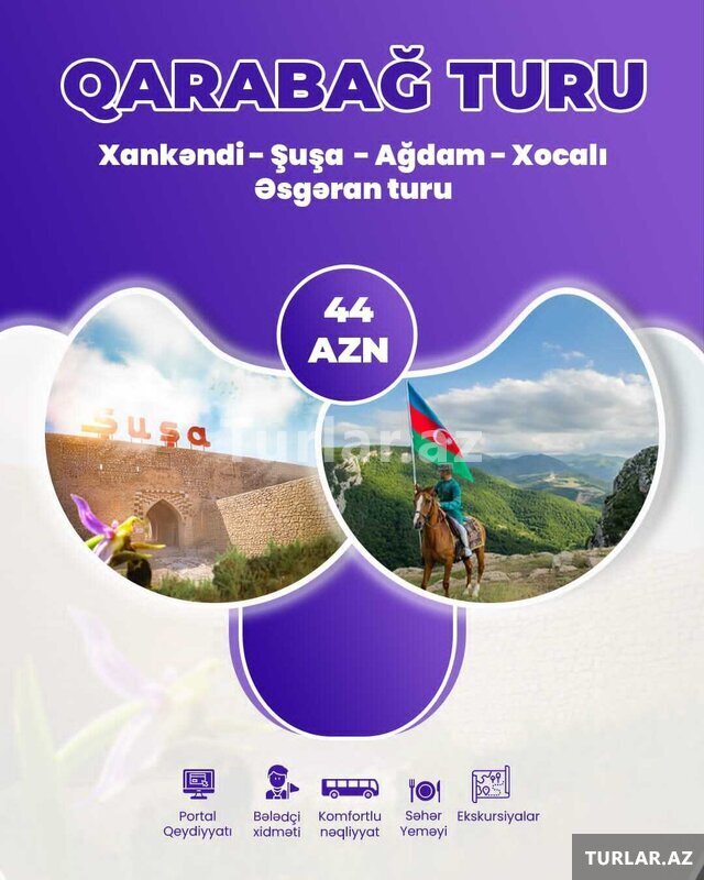 * QÜRUR SƏYAHƏTİ*. *Xankəndi – Şuşa – Ağdam – Xocalı – Əsgəran*. * Tarixlər*: 8, 9, 10, 11 Noyabr. * Qiymət. Ekonom – 44 AZN. Standart – 49 AZN. * Qiymətə daxildir. Portal qeydiyyatı. Komfortlu nəqliyyat [читат далше]