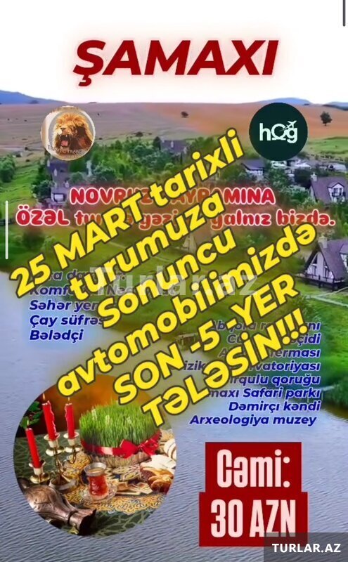 Tur və qiymətlər Mart və Aprel ayları ücün keçərlidir və Həftə boyu 3 dəfə təşkil edilir.