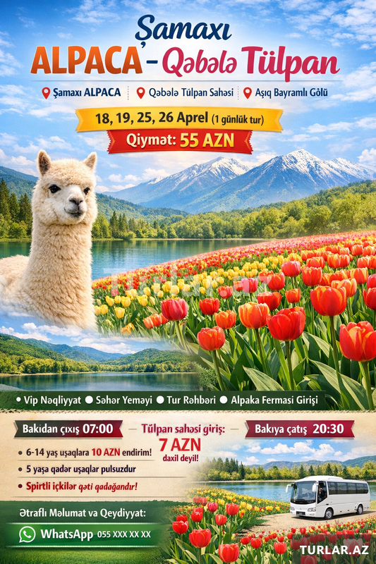 Şirkət55 Azn Tur və qiymətlər Mart və Aprel ayları ücün keçərlidir və Həftə boyu 3 dəfə təşkil edilir.