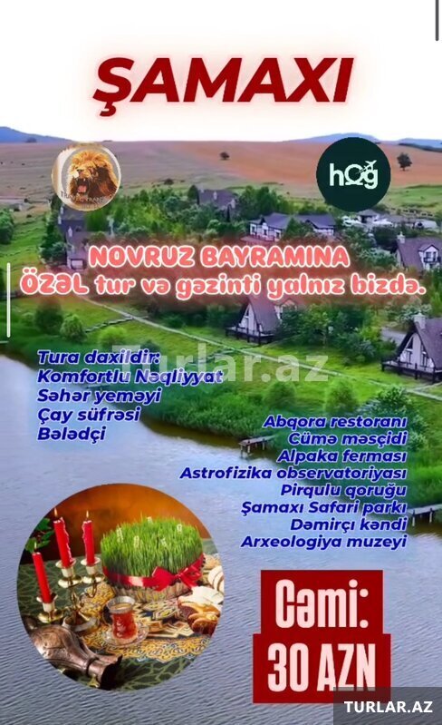 Şirkət109 Azn *Novruz bayramına özəl *Zaqatala - Qəbələ - Qax - Şəki turu •Turun tarixi: - 20-21 Mart (119₼/149₼) - 21-22 Mart (119₼/149₼) - 22-23 Mart (119₼/149₼) - 23-24 Mart (109₼/149₼) - 28-29 Mart (109₼/149₼) ✓Paketə daxildir: •
