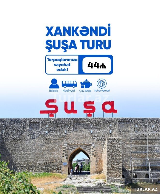 40 Azn 2 GÜNLÜK QARABAĞ TURU ︎ Şuşa ︎ Xankəndi ︎ Laçın ︎ Ağdam ︎ Əsgəran ︎ Zəngilan ︎ Cəbrayıl Tarix: 3-4, 6-7, 10-11, 13-14, 17-18, 20-21, 27-28 Sentyabr Qiymət: 125 azn Həftə içi 139 azn Həftə sonu — Qiymətə daxildir: *