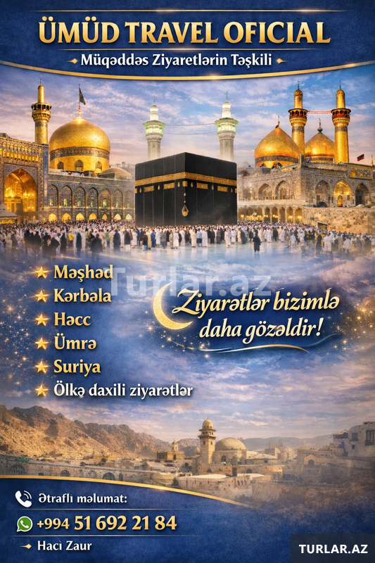 1530 Azn HİCRƏT TOUR, Ümrə və Həcc ziyarətlərinizi rahat , mənəvi və unudulmaz bir təcrübəyə çevirmək üçün sizin xidmətinizdədir.Biz sizə ruhən dolğun, mənəvi bir ziyarət təqdim edirik. Niyə bizi seçməlisiniz? Peşəkar