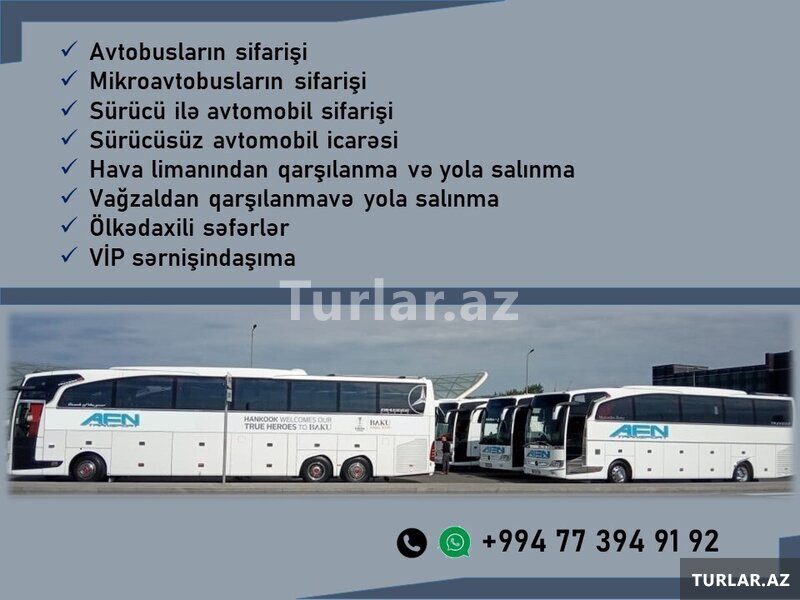 Eyni zamanda avtobusların icarəsidə mümkündür. (MB sprinter, İsuzu, MB 403, MB Travego, Neoplan və s.